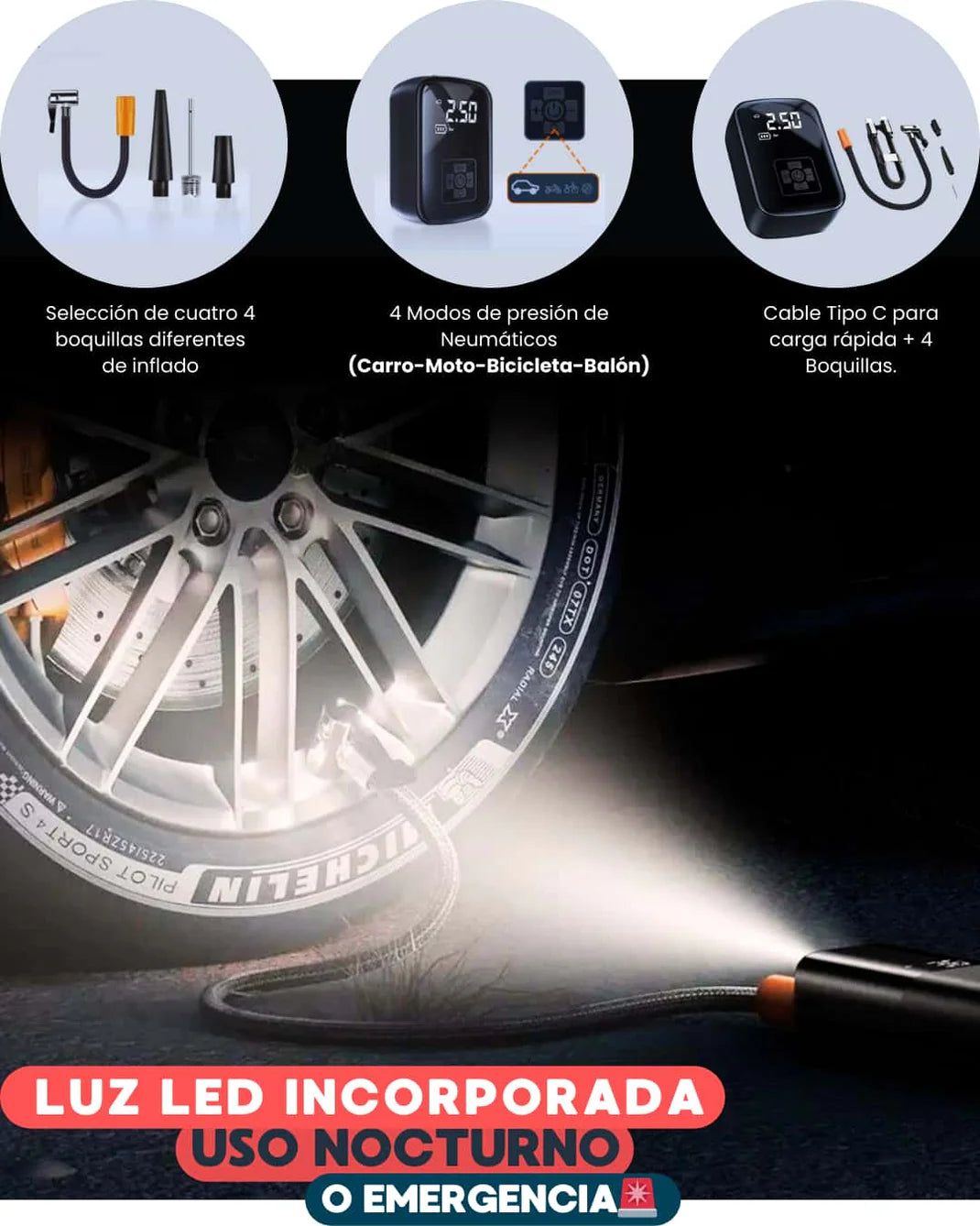 ¿Neumático desinflado y sin luz en plena carretera? ¡Este dispositivo tiene la solución! 🔦🚘