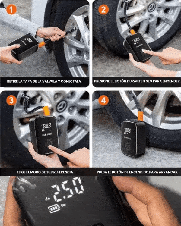 La vida ya es lo suficientemente ocupada sin tener que preocuparte por buscar una gasolinera cada vez que una llanta se desinfla. Este inflador portátil elimina el estrés de quedarte varado. Puedes inflar neumáticos de autos, motocicletas, botes y más en cualquier lugar, en cualquier momento. Olvídate de los costos de llamadas de emergencia o las largas esperas por ayuda en carretera.