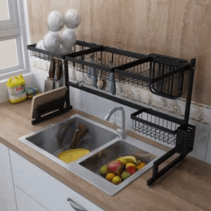 Los materiales comunes tienden a desgastarse, pero este escurridor está construido para durar. El acero inoxidable ofrece robustez y resistencia, asegurando que no sólo organice, sino que lo haga sin corroerse ni mancharse. Es la combinación perfecta de resistencia y funcionalidad, manteniendo tu cocina libre de problemas y renovada.